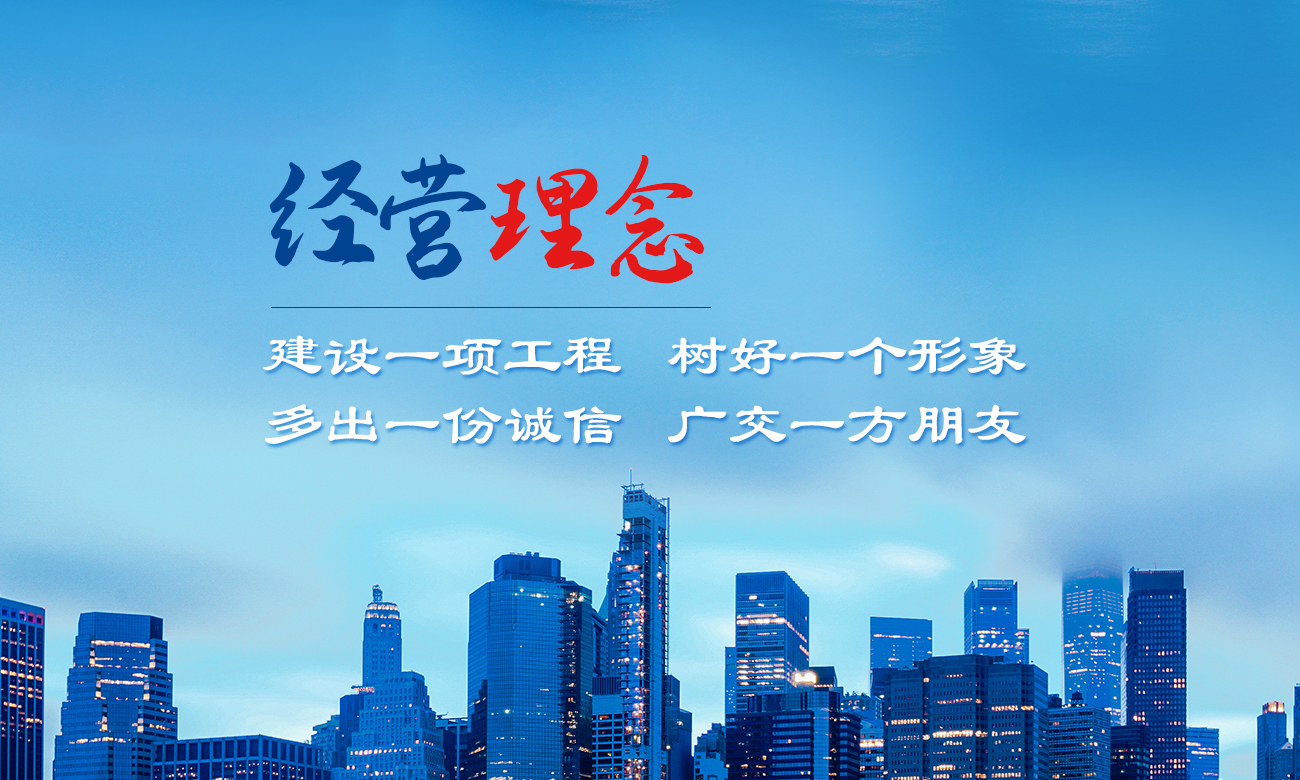 公司以建造合格建筑產(chǎn)品、助力國家建設為使命,以構建幸福企業(yè)為愿景。公司深知助力國家建設為使命所擔負的責任,故以“如履薄冰、如臨深淵、高調(diào)精細做事、低調(diào)謙虛做人”為工作理念,建立了完善的管理制度和質(zhì)量保障體系,以人為本,構建和諧環(huán)境。公司牢固樹立安全意識、文明意識、質(zhì)量意識、環(huán)境意識和精品意識。在公司質(zhì)量管理過程中貫徹“雙百”方針:即工程合格率100%,客戶滿意率100%。以“建設一項工程,樹好一個形象,多出一份誠信,廣交一方朋友”為公司經(jīng)營理念。